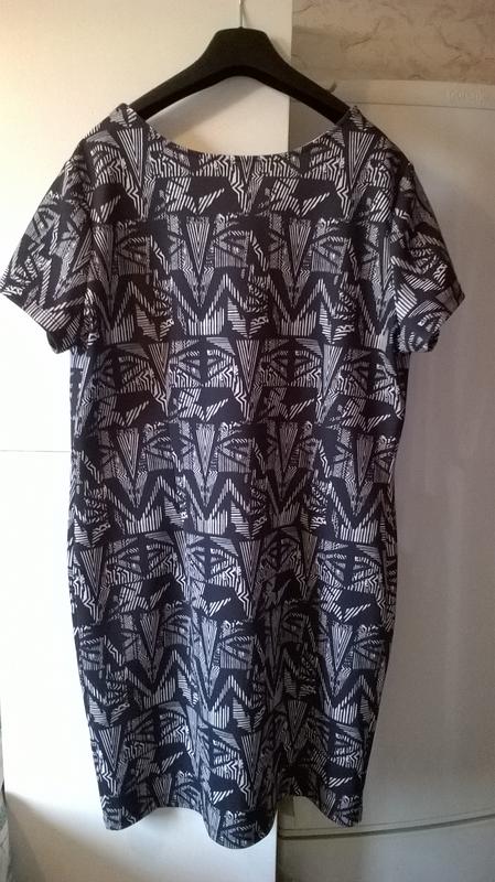 Платье футляр 2XL Select, ткань микродайвинг стильный темно-серый с белым абстрактный принт, без подкладки Замеры в свободном виде без натяжки: полуобхват груди 56 см. полуобхват талии 49 см. полуобхват бедер 55 см. плечевой шов 9,5 см. длина рукавчика от плеча 18,5 см., ширина 18 см. (полуобъем) ширина спинки 42 см. длина по серединке спинки 88 см. ткань эластичная, очень приятная на ощупь, хорошо держит форму, отлично садится по фигуре сток, состояние идеал, без следов носки
