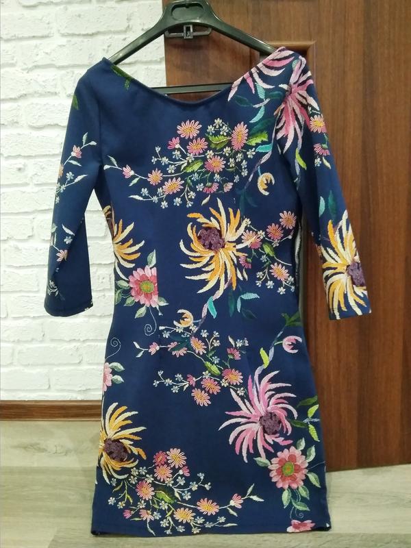 покупала для себя , сейчас похудела и висит в бёдрах , сядет классно по фигуре на размер 46-48 , насыщенный синий и цветочный принт. ,можно под поясок , есть нашивки под него , параметры прошу в приват, фото замочка сбоку добавлено , хорошо тянется , рукав 3/4
