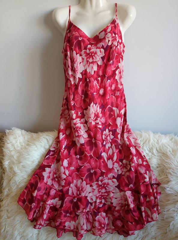 Яркое двойное платье, на подкладке, и на тонких регулирующихся бретелях. Покрой по косой. Мерки сняты без натяжения ткани. Пог 50 Поб 54+ Длинна 98/106