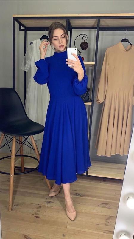 Легкое нежное женственное платье актуального синего цвета,с красивой юбкой солнце-клеш и открытой спиной.Платье новое!производство Украина.заказывала себе в интернет магазине было без бирки!но я на мероприятие его не надела.хотя садится шикарно!на манекене все видно!размер С.ткань не светится!!! длина 125 см., пог 42 , пот 37,длина рукава 62