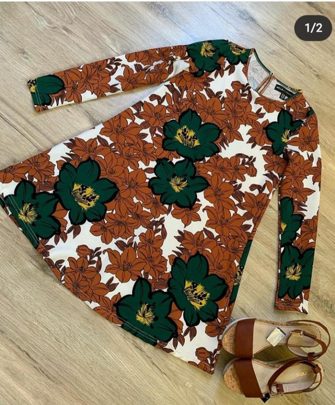 Красивый принт.Размер 8.Креп.Длина 83,ПОГ 44.Новое без бумажкой бирки (витрина)