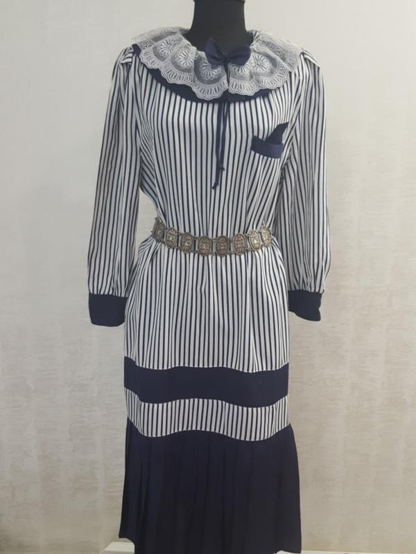 Роскошное винтажное платье с кружевным воротником .Ткань похожа на шёлковый поплин.Носить можно с поясом и без.На фото пояс неродной. пог 55см пот 52.5см поб 52.5см др 58см ди 112см Будет ещё много фирменных вещей. Подписывайтесь! Я только стартую! Имейте ввиду, что пока вы добавляете товар в ''избранное '',кто-то его уже покупает.И вы можете упустить свой шанс приобрести понравившуюся вещь. Дешевле покупать сразу несколько вещей-таким образом вы экономите на доставке.При покупке трёх и более вещей доставка бесплатная. Удачных и приятных покупок!