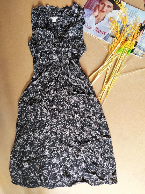 Віскозне сукню ,талія на резинці,навколо ворота аконтовка воланом Довжина 94 Груди 43 Талія 32 тягнеться до 42 Стегна 51
