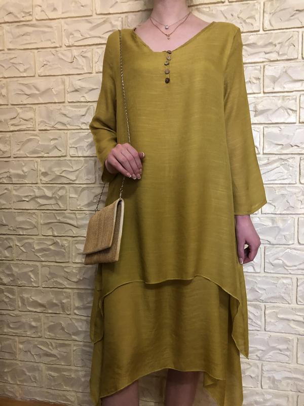 Сукня, легке, повітряне , тканина м'яка. Довжина 104см. Груди 102см. Талія 108см. Стегна 118см. Від плеча до плеча 43см. Спина 38см. Рукав 53см.7/8.