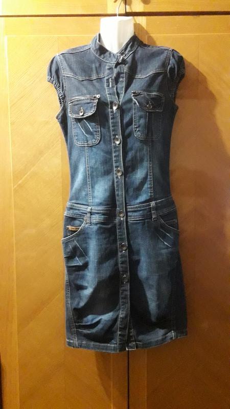 Красивое джинсовое платье. Состояние идеальное, но есть нюанс- фото пять - отсутствует пуговица вторая от верха и есть небольшое отверстие поэтому. Из-за этого такая низкая цена. Бирок ни с составом, ни с размером нет. Полуобхват груди 46 см . Полуобхват по талии сзади 36 см , спереди 38 см Полуобхват по поясу спереди 46 см, сзади 40 см . Полуобхват по бёдрам 46 см . Полуобхват по низу 44 см. Плечи 11см. Рукав 9 см( по низу резиночка). Длина по спине 93 см , из них 50 до пояса , пояс( можно протянуть ремень) 4 см , внизу разрез 9 см . Длина от подмышек 74 см . Длина по переду ( по планке с пуговицами) 90 см , Спереди пуговицы, которые разстегиваются до пояса , а внизу нет. Карманы - два накладных сзади на попе , два накладных спереди на груди ( застегиваются на пуговицы и над ними молния со скрытыми карманами), два скрытых кармана( и внутри ещё маленькие кармана) Воротник стойка 3,5 см. ❗Доставка Новой или Укрпочтой за счет покупателя. ❗Отправляем после полной оплаты на карточку Приватбанка.