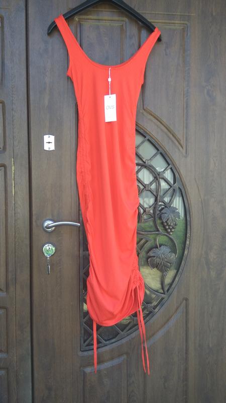 Яркое миди платье затяжками ниже колена рубчик по фигуре платье майка утяжки футболка