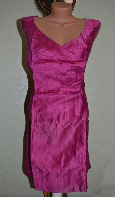 Платье лен прямое на невысокую женщину-девушку / типа футляр / неяркая фуксия, kaliko, 18