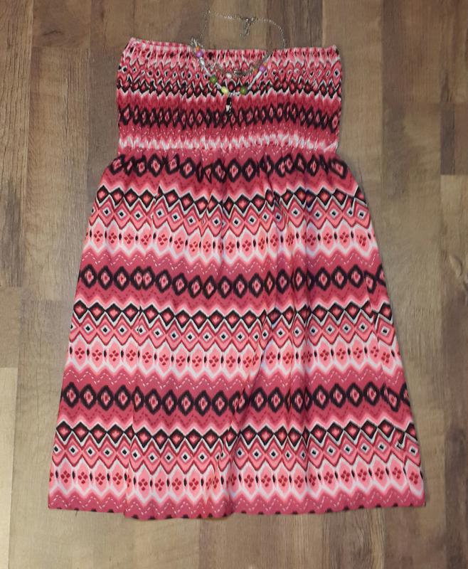 Стильне плаття з орнаментом. Пог 38см. Довжина від грудей 76см. Можна носити на m-l. Дивіться всі мої речі. Постійно додаю модні обновочки. Підписуйтесь:)