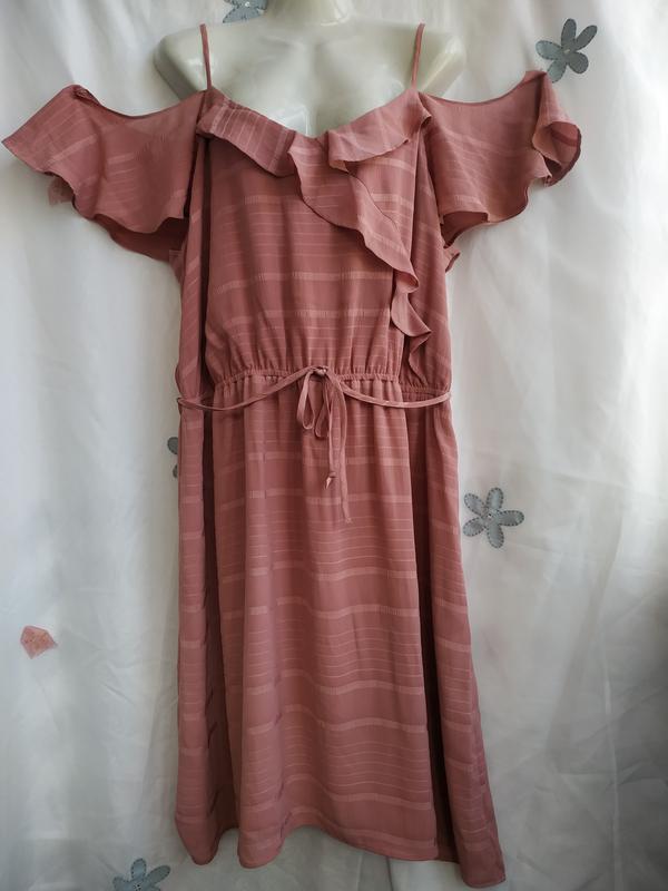 СИМПАТИЧНОЕ ПЛАТЬЕ С РЮШАМИ И ОТКРЫТЫМИ ПЛЕЧАМИ ПОГ.58 пот. на резинке поб. 66 ДЛ. 106