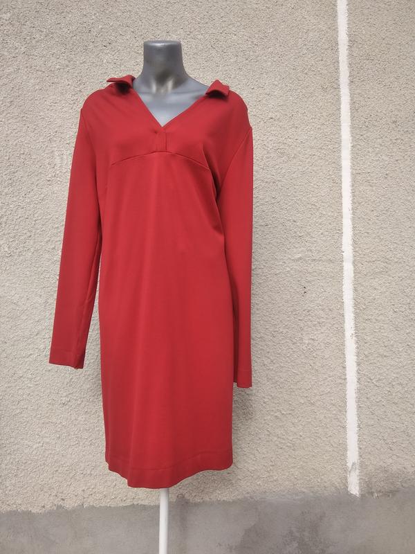 Плаття з трикотажу насиченого кольору, довгий рукав, милий комірець, не облягаюче