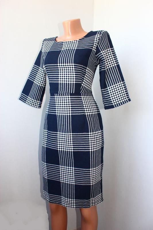 Платье по типу футляр текстурное темно-синее в крупную клетку 3/4, collection, london, 8
