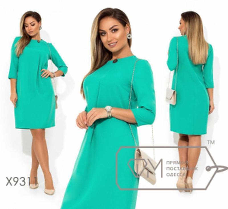 Однотонное прямое платье, батал, цвет бирюзовый, костюмная ткань , новое, ПОГ - 51 см, ПОТ - 50 см, ПОБ - 55 см, длина - 98 см, рукав - 3/4