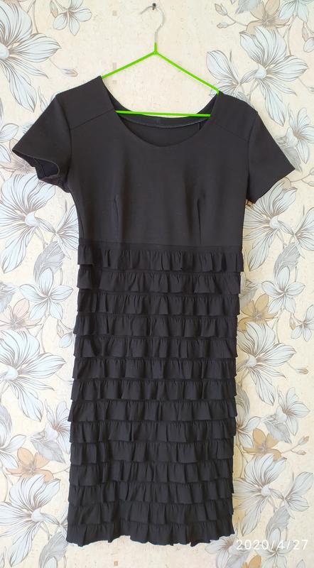 Чёрное платье р.42 Верх-теплый трикотаж,низ- стрейчевые воланы. Длина 92,пог 41