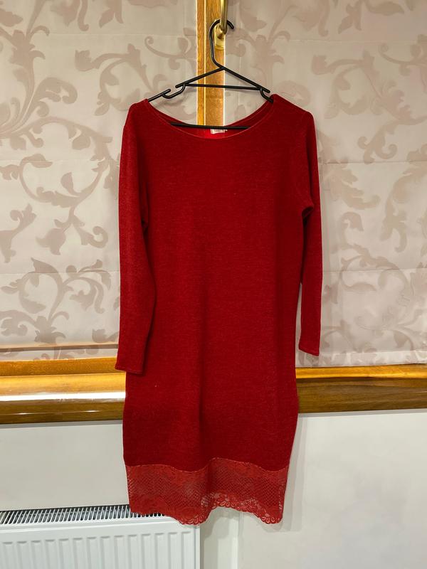 Очень приятное к телу платье , цвет темно красный, одевала 1 раз на 2 часа, красивое кружево Ширина 50 Длина 79