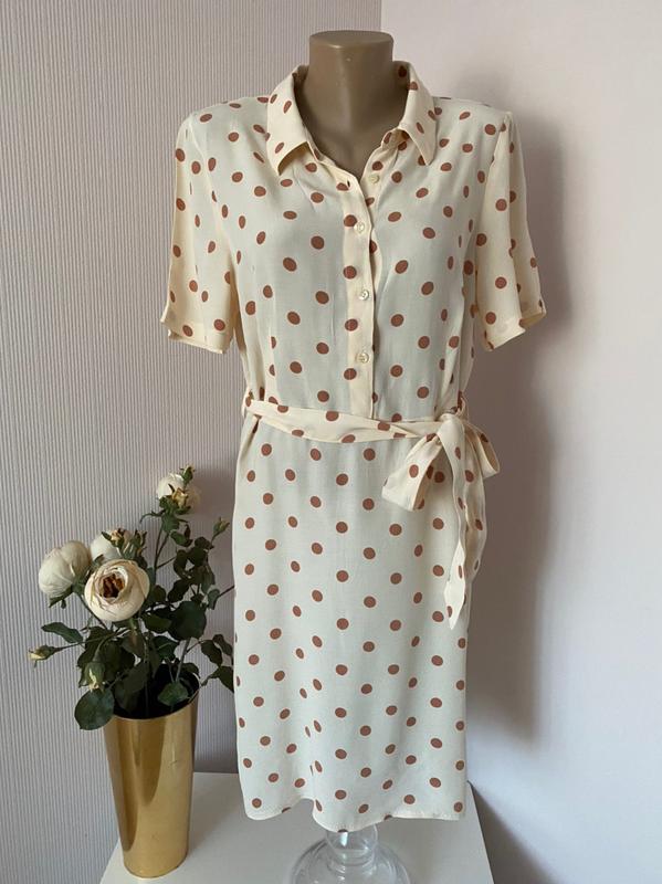 Милое и элегантное платье в горошек с поясом Цвет на фото соответсвует реальному {кремовый} Состояние идеальное, без дефектов Размер по этикетке - 12/14 замеры: полуобхват под руками - 52 полуобхвт в талии {там, где резинка} - 41 в спокойном состоянии, в натянутом - 47 полуобхват в бедрах - 53-54 длина - 89 длина рукава - 25 ширина рукава внизу - 19 {смотреть фото} ширина между плеч по спине - 39 Если остались вопросы - пишите!