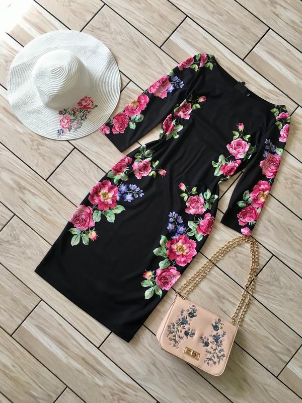 Новое Платье футляр с биркой , идеально ложится по фигуре , приятная ткань , нежные цветы , длина 98, пог 42-46, пот 32-38, поб 42-50, рукав 3/4