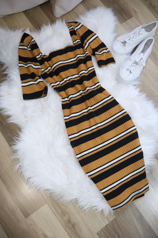 Дуже гарне плаття в рубчик з гарною спинкою🧡 Йде по фігурі👌🏻 M-S Довжина 88 Рукав 27 Пог 35 Пот 32 Поб 35 Низ 33