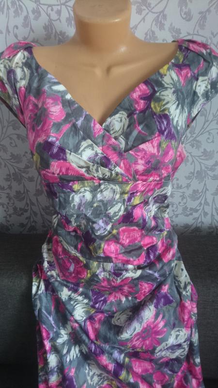 Очень милое хлопковое платье Suzi chin в принт цветы. Смотрится женственно и эффектно. Подойдёт на размер М. Пог 46 см, пот 38 см, поб 51 см, длина от плеча 97 см.