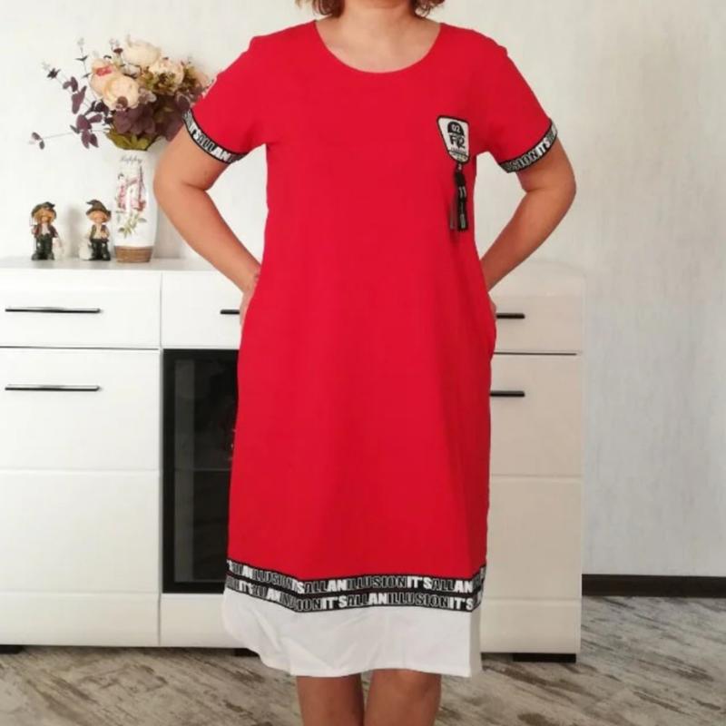Платье с коротким рукавом из модала, из очень лёгкой, приятной к телу ткани( это хлопковая нитка со специальной обработкой-хлопок приобрёл эластичность, но не потерял своей воздухопроницаемости). . Производство Турция. Размеры XL( 48-50 объём груди 100-102 см,объём бёдер-106 см, длина 97 см) 2Xl (50-52 объём груди 103-104 см,объём бёдер-110 см, длина 103 см), 3XL (54-56 объём груди 104-106 см,объём бёдер-110 см, длина 107 см), 4XL (56-58)