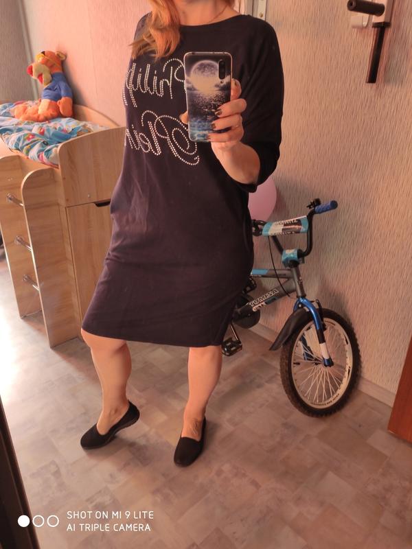 Платье супер! Fhilipp Plein.Ткань похожа на катон ,качество отличное.По бокам с карманами, размер 48-50 полный 50 тоже подойдёт , скрадывает недостатки.Одето на 46 размер очень большое.Цвет синий ,на фото отсвечивает пятен нет.Одето один раз!