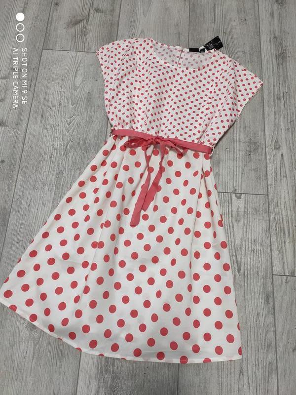 Классное летнее платье 2 в 1 для беременных и кормящих мам от Esmara. Красиво садится по фигуре, легкая натуральная ткань - 100% хлопок. Предназначено и для беременности (чуть завышенная талия, сзади есть резиночка) и для ГВ (на груди 2 потайных молнии, которые можно быстро расстегнуть для удобного кормления малыша. Яркий летний принт в горошек! Размеры в наличии от Л до ХЛ (европейские 40, 42). 40: длина общая 92 (+ 5 см спереди), длина от плеча до резинки под грудью 36, ширина по резинке 45 (свободно тянется до 49), пог 54, поб 63 42: длина общая 95 (+ 5 см спереди), длина от плеча до резинки под грудью 37, ширина по резинке 46 (свободно тянется до 51), пог 56, поб 65