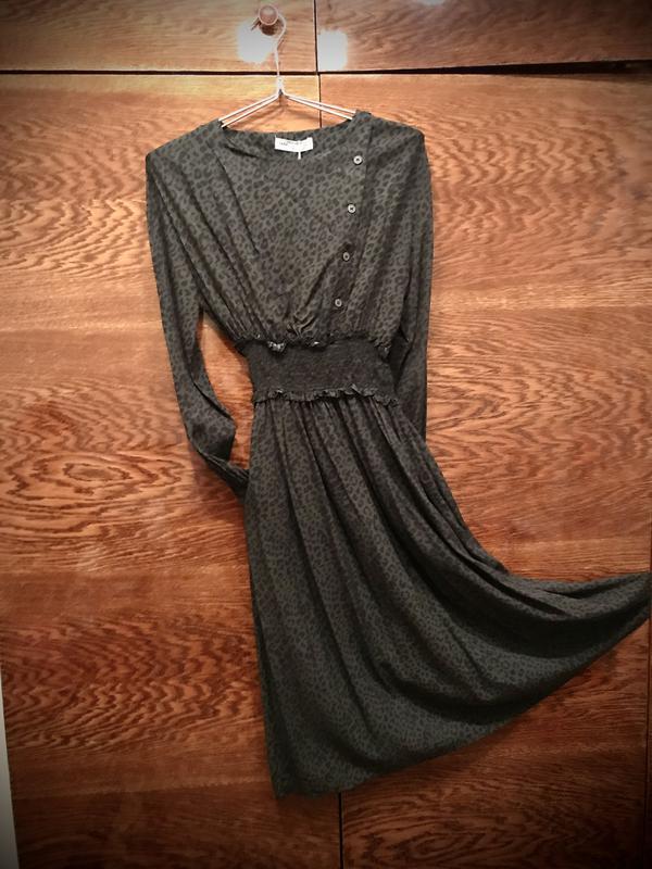 Модна сукня з кишенями.В поясі і на рукавах широка резинка.Рукав реглан. Довжина-1.14м.