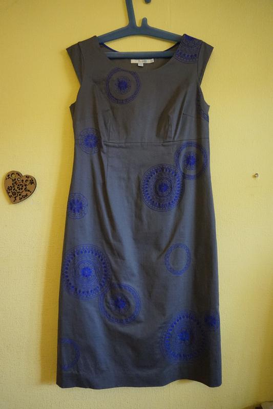Дуже класна сукня з оригінальним орнаментом, що є нашитим. Є підкладка. Вдягнена 1 раз. Довжина -105,см , замір від верха до лінії відрізу - 32,5см, від лінії відрізу до низу -73 см, ПОГ - 47 + витачки, (гарно сідає на ПОГ 50см), ПОТ 42см, ПОБ - 49,5см . Підійде на не дуже високу дівчину, краще зростом 166см приблизно