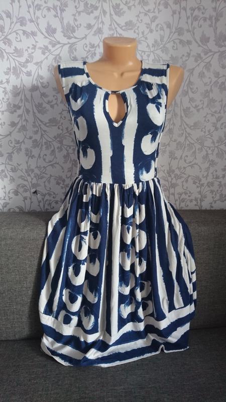 Очень стильное интересное платье дорого бренда Maeve, красиво подчеркивает грудь и талию. Смотрится очень эффектно и оригинально. Спареди обрезала пояс, в носке не заметно, можно сравнить фото 1 и 7.