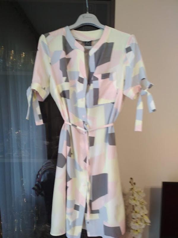 Шикарное платье-рубашка,принт мозайка,с коротким рукавчиком и пояском, размер 50-52.