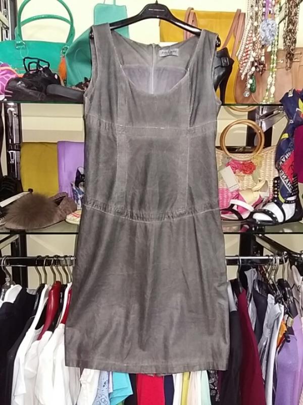 Платье кожвинил Италия цвет серый с подкладкой сбоку молния девочки безупречно впереди до юбки перфорация