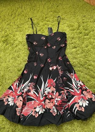Платье нарядное дорого смотрится. Ткань чрезвычайно приятная, легкая. Низ подкладки имеет фатин, что делает его более пышным. Платье имеет чашки. Фирма Jane Norman. Размер S.