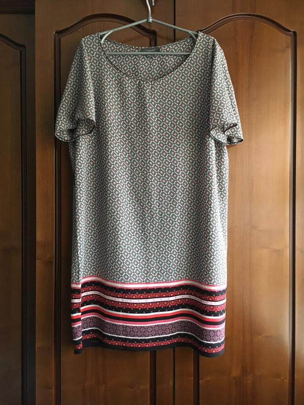Летнее платье миди в принт фирмы Primark. Состояние идеальное. Лёгкое. Есть небольшой рукавчик. Не мнётся. Не тянется. Можно носить под ремешок. Практичный повседневный вариант. На все дополнительные вопросы отвечу с большим удовольствием. Плечи - 44 см ПОГ - 60 см ( есть выточки ) ПО талии - 60 см ( можно носить под ремешок ) ПОБ - 63 см Длина от плеча - 95 см