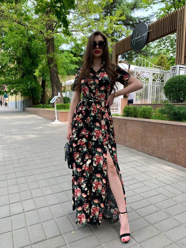 Очень красивое платье длины миди Платье в цветочный принт будет уместно , как для городских прогулок так и для вечернего выхода Размер универсал , поясок на поясе съемный Ткань : штапель Цена : 760