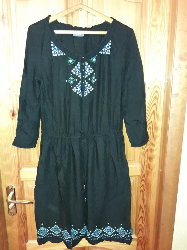 Легкое , приятное к телу платье , ткань , вискоза. Указан размер 38 , но очень полномерное , олично подойдет на 40-42 .Пог - 51 , талия - 46 , бедра - 62 , длина рукава 52 , длина платья 102 . Абсолютно новое , без бирки , привезено из Чехии .