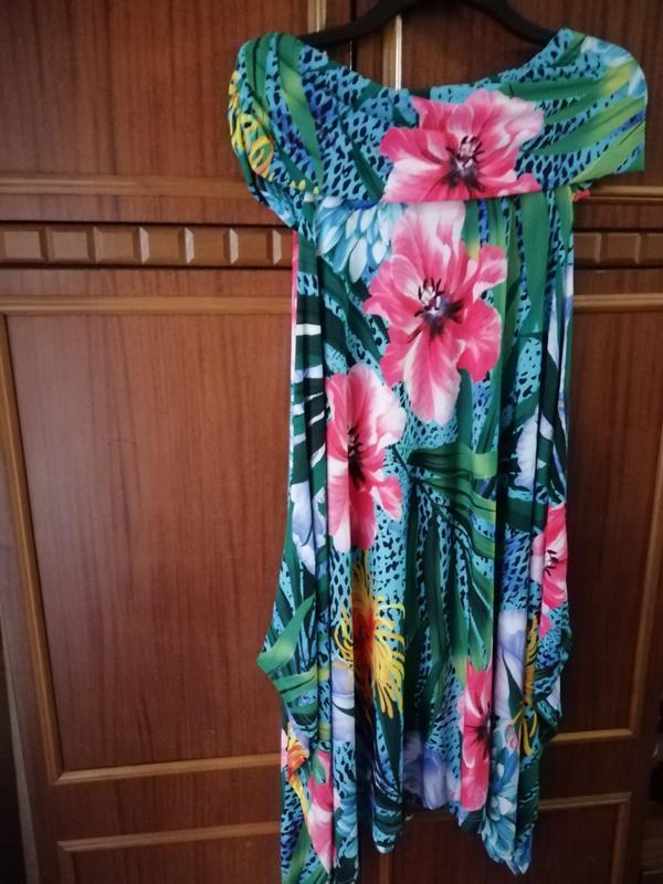 Сукня вільного крою, яскраве, підійде для вагітних, відкриті плечі, прорізи для рук щоб сукня не сповзала з плечей,асиметричний низ.На дівчині точно така ж модель сукні,в іншому кольорі.