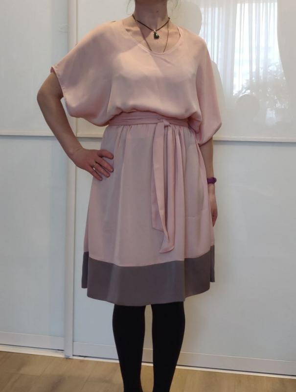 Сукня вільного крою. В комплекті комбінація та пояс. Колір - рожевий пудровий. Розмір 48.