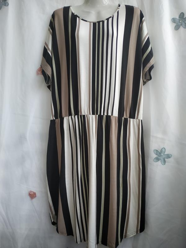 МОДНОЕ ПЛАТЬЕ В ПОЛОСКУ. ПОГ. 60 ПОТ НА РЕЗИНКЕ ПОБ.66 ДЛ. 107