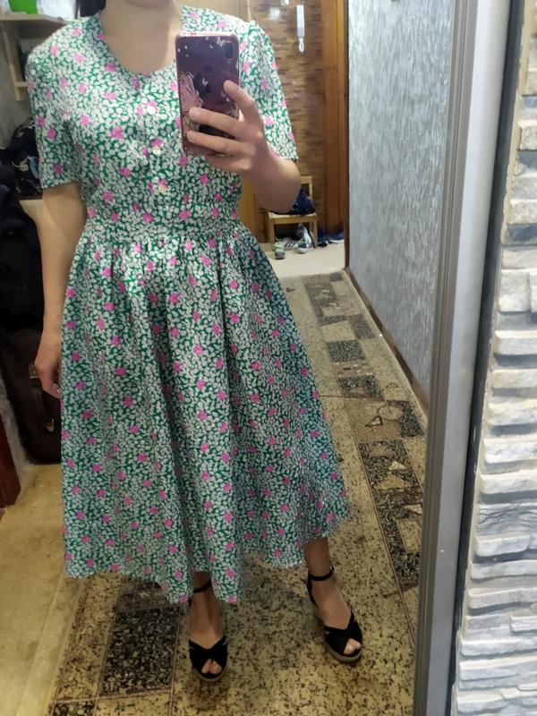 Очень лёгкое красивое и невесомое платье.Талия сзади на резинке.Длина-116,рукав-24см,пог-46см,пот талии-35(+тянется до-41см),бедра свободно.