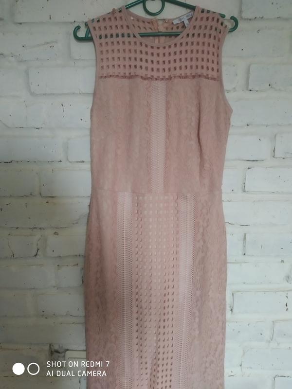 ніжне пудрове плаття з під'юпником,оброблене кружевом