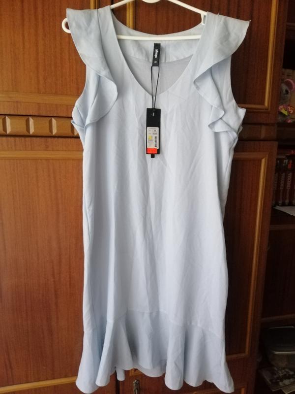 Платье бренд Eksept цвет нежно-голубой,низ кружевной. Длина 92см,в талии 40см,модель свободная, размер указан XS,но пойдёт и на S.