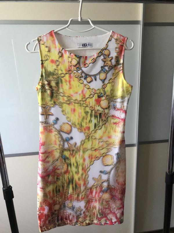 Летнее Платье миди с морским принтом и 3D рисунком . Размер: М. Длина:88см ПОГ:40см, Пройма:22см.