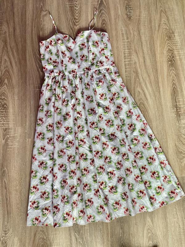 Ідеальне плаття від дорогого бренду. Стан нового. В реальності набагато краще, ніж на фото. Без дефектів! Якісна тканина, тримає форму. Склад вказаний {фото}. Збоку замочок. Завищена талія, брительки регулюються. Пог - 48 Поп - 43 Довжина - 124. Фото на тілі нема. Без торгу.