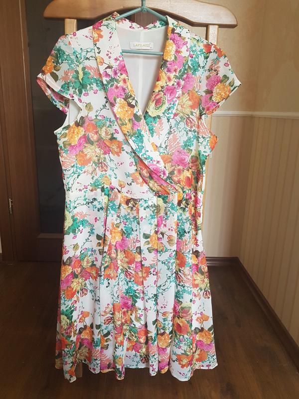 Очень красивое и воздушное летнее шифоновое платье с цветочным принтом. Длина изделия от талии 100 см.