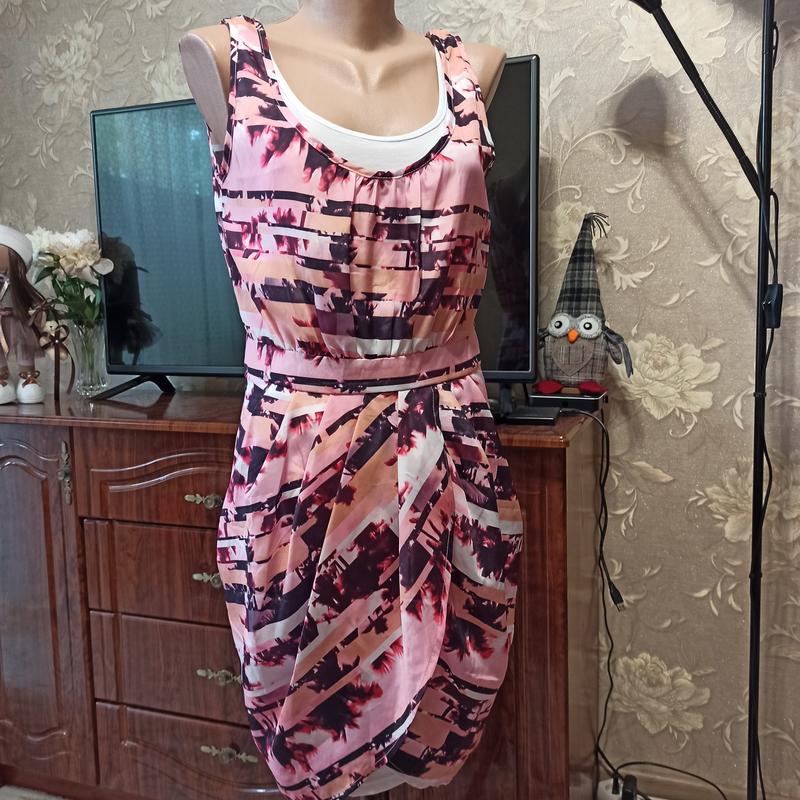 бренд "Takko Fashion"Germany Платье двухслойное, верхний - цветной, нижний - белый Материал: 100% полиэстер, нижний материал - 47% полиэстер, 47вискоза, 6%эласта Сток,без бумажных бирок платье соответствует размеру XS(34)Euro.наш 40 размер ширина между подмышками 43 см Полуобхват талии -32 см Полуобхват бедер - 42 см Длина изделия -87см, перед короче на 10 см S(38)Euro.наш 44 размер ширина между подмышками 45 см Полуобхват талии -36 см Полуобхват бедер - 46 см Длина изделия - 89 см, перед короче на 10 см M(42)Euro.наш 48 размер ширина между подмышками 52 cм Полуобхват талии -40 см Полуобхват бедер - 52 см Длина изделия - 92 см, перед короче на 10 см L(44)Euro.наш 50 размер ширина между подмышками- 57-58 cм Полуобхват талии -55 см Полуобхват бедер - 55 см Длина изделия -95 см, перед короче на 10 см