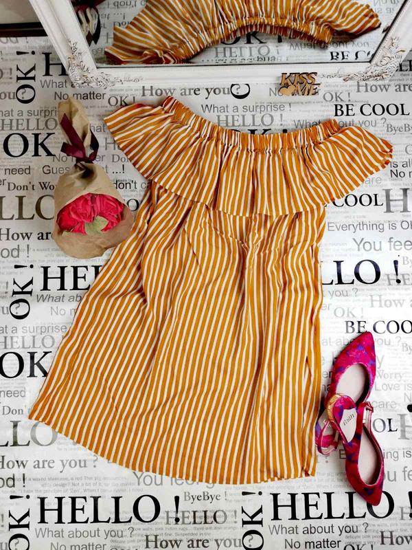 Брендовое милое платье в полоску с рюшами на плечах primark