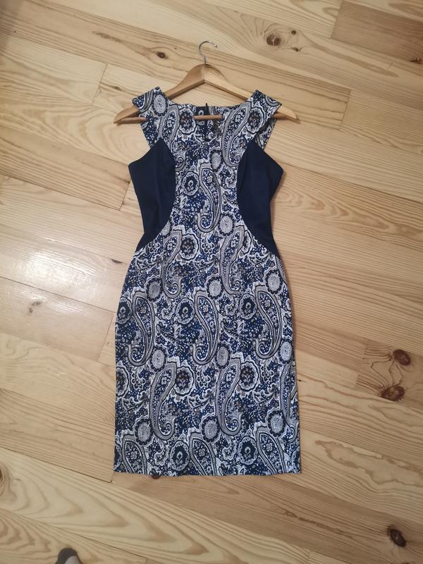 Гарна синя класична суконка від Decorus (український бренд). Сідає по фігурі, має спереду симпатичний виріз. Ззаду блискавка. Склад на фото. Стан ідеальний:одягнула 2 рази та випрала. Розмір 38.