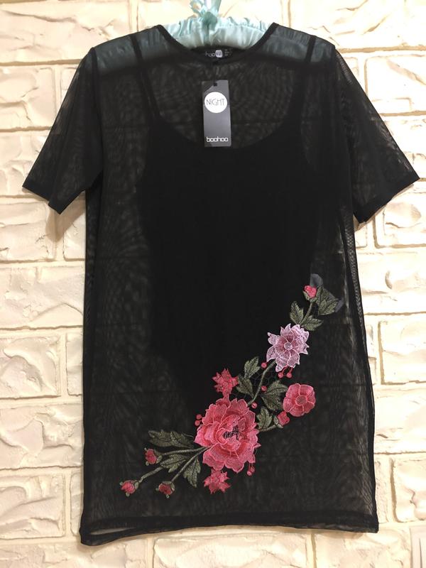 Платье-туника на подкладка -комбидрезом. Ткань фатин. С красивой аппликацией.