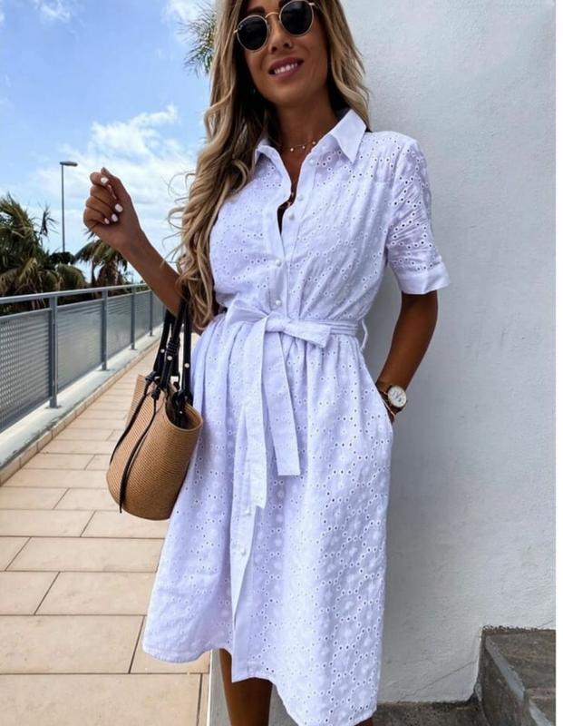 Платье новое с этикеткой, очень красивое. Подойдёт как к кроссовкам так и к каблуку! Ткань: прошва на подкладке Размер 44-46 Платье с поясом, длинна 100. Цена 430 грн.
