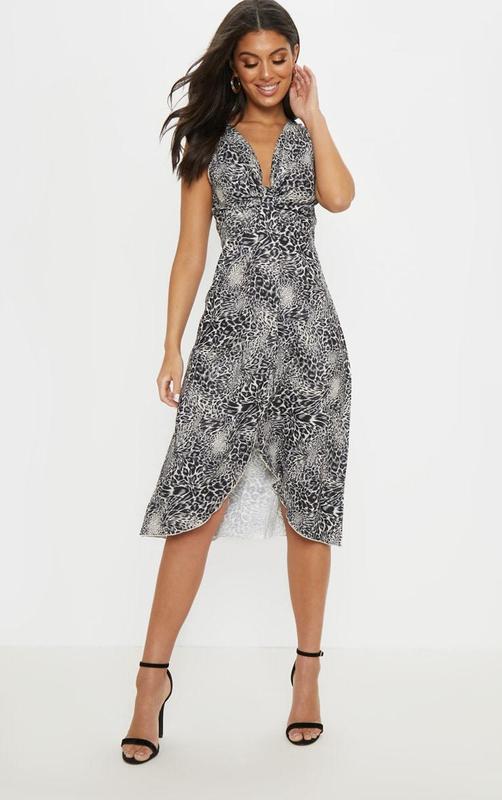 👗крутое серое платье леопард/леопардовое платье миди с декольте/ассиметричный сарафан👗