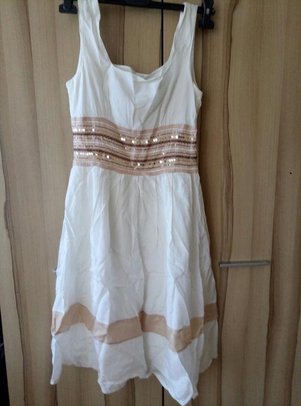 Летнее платье Reva & Ro (Турция).Состояние отличное (как новое), есть маленький нюанс - возле скрытой змейки сбоку - чуть надорвалось по шву ( легко устранить - зашить) не видно почти. Само платье на подкладке. Хороший состав: 60 % rayon, 40 cotton. Платье не носила, т.к. поправилась и оно мне стало тесно. Длина платья 95 см, Ширина в груди 43 см, ширина в талии 35 см. на фото платье не глаженное.